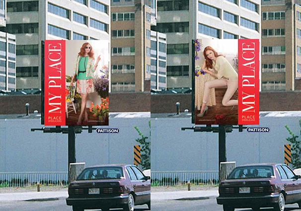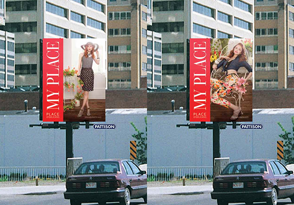 The creative on the left was a simple branding campaign produced as part of a pitch presented to Place D’Orlean shopping mall. It was presented to give the client an idea of how their brand would look on Pattison Outdoor Advertising’s products. The images are from a previous season’s campaign and the layout reflects the shopping mall’s branding from their website and previous ads. The photographs are the property of Place D’Orlean.
